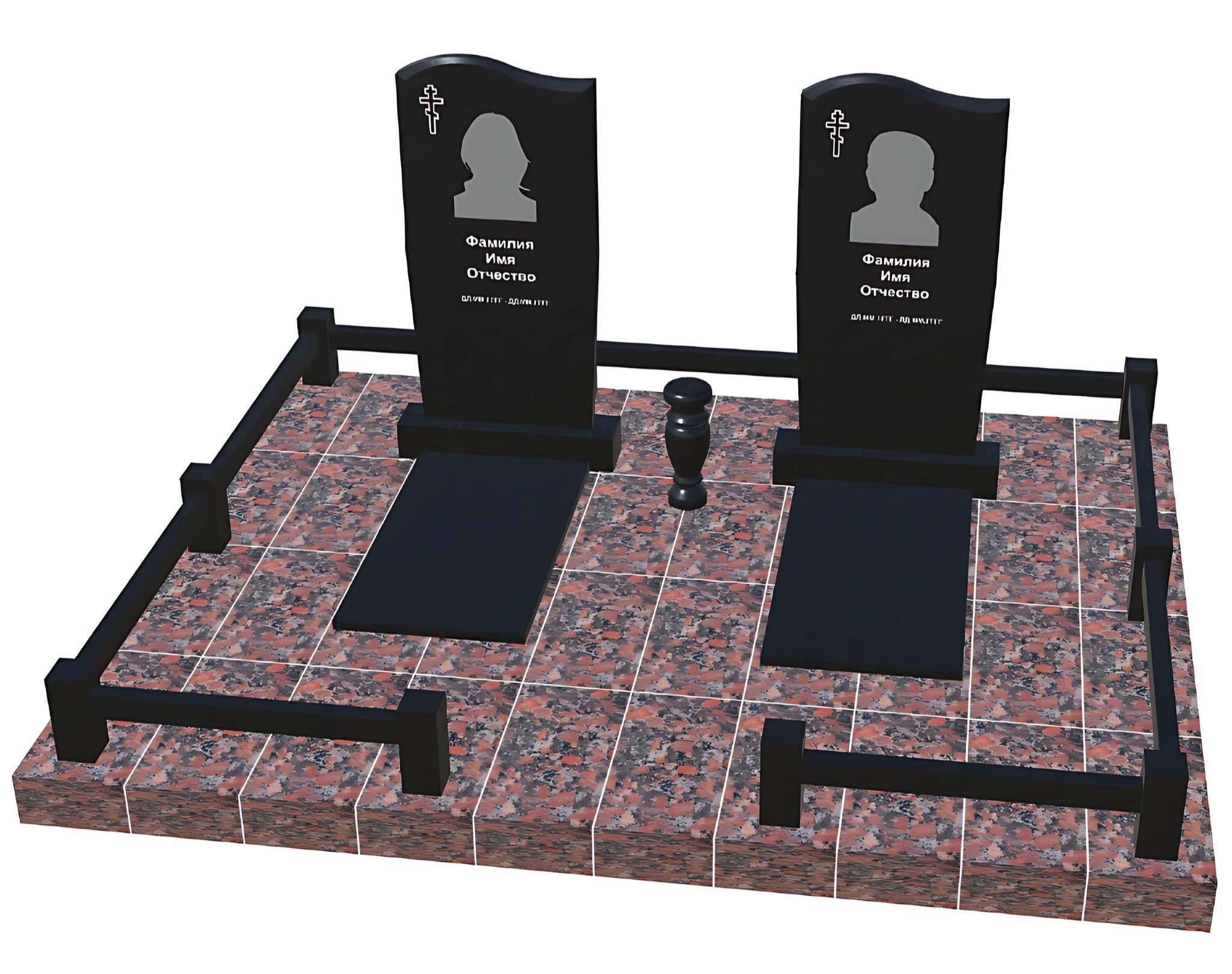 Полный комплекс ритуального оформления места захоронения, выполненный профессионально, с учетом всех технических и эстетических требований. Товар включает в себя бетонное основание высотой 15см. Далее: